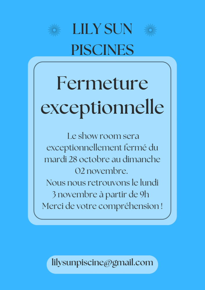 Vous pouvez nous adresser un mail à : lilysunpiscine@gmail.com