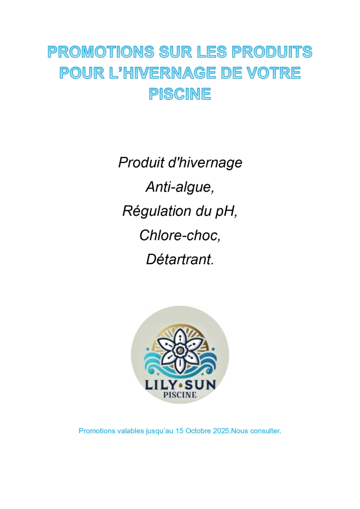 Les Produits Indispensables pour un Hivernage Actif : Produit d'hivernage, anti-algue, régulation du pH, chlore-choc, détartrant.